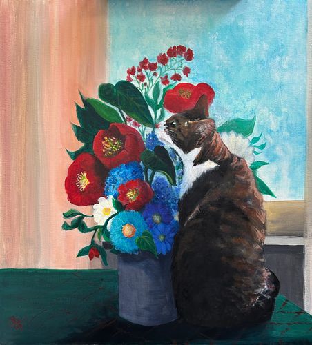 My mediums are mostly two dimensional applications such as oil, cold wax, gouache and acrylics, on a variety of surfaces. Each idea manifests in its own individual style. I also work in charcoal and graphite as well as the occasional found material.
